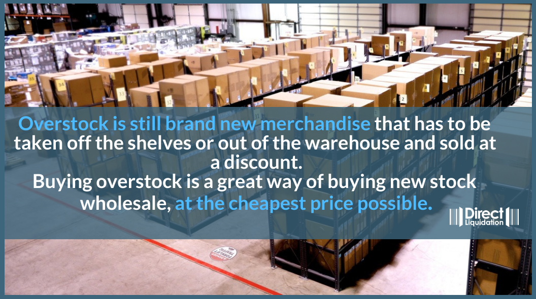 - Pretty much all overstock is brand new merchandise, which means it’s retail ready to sell to customers after purchase.
